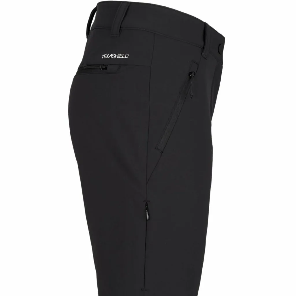 Die Softshellhose hält aber nicht nur Wind und Nässe auf Abstand, sondern ist im Inneren mit einem weichen Microfleece versehen. Dieses spendet dir bei sportlichen Einsätzen an kalten Tagen wohlige Wärme. Die Hose kann zudem mit ihrem atmungsaktiven Gewebe auftrumpfen. Sie eignet sich somit sowohl für ruhige als auch für sportliche Unternehmungen bei Temperaturen um den Gefrierpunkt.