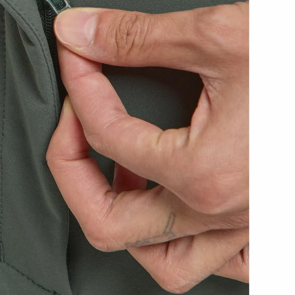 Ihr recyceltes Kunstfasermaterial ist wind- und wasserabweisend, sodass dir ein leichter Regen das Bergpanorama nicht vermiest. Bei steilen Aufstiegen wirst du vom elastischen und atmungsaktiven Gewebe unterstützt. Fließt der Schweiß, kommt dir das feuchtigkeitsleitende Innenband im Bund zu Gute.