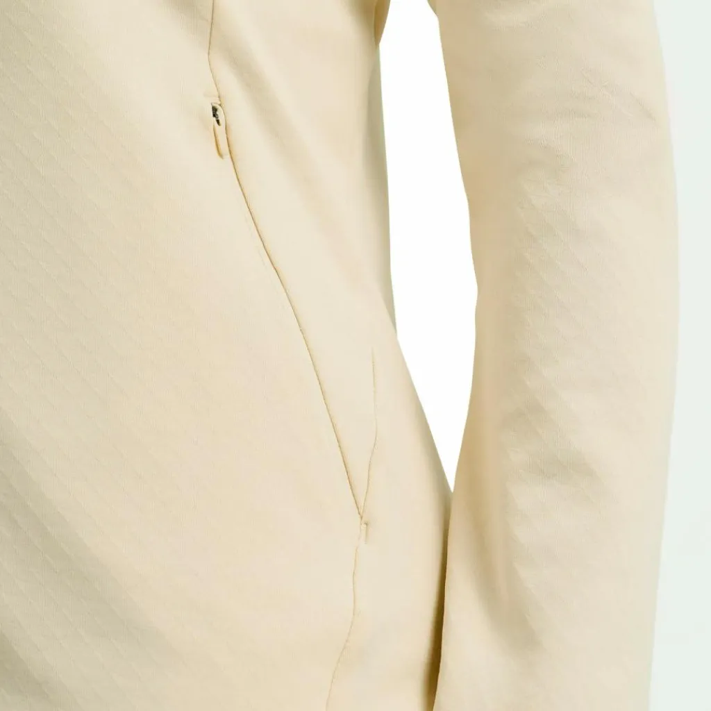Mir ihrem hohen Anteil an recyceltem Polyester und einem großzügigen Schuss Elasthan kann die Fleecejacke mit Strapazierfähigkeit und jeder Menge Flexibilität punkten. Bei herausfordernden Abschnitten transportiert das Texadri-Material den entstehenden Schweiß zügig nach außen, sodass du ein trockenes Gefühl behältst. Das weiche Innenmaterial unterstützt diesen Effekt durch seine spezielle Wabenstruktur zusätzlich.