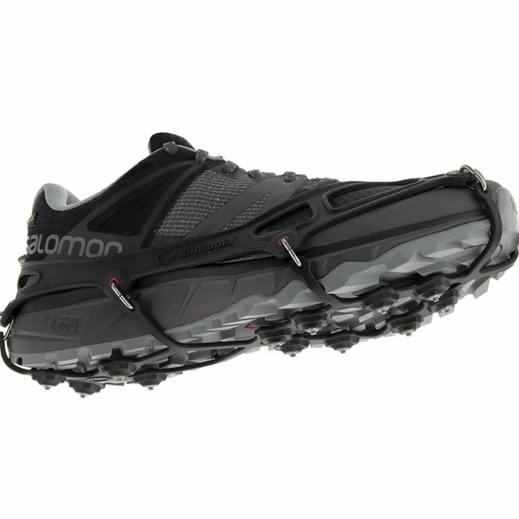Die hochwertigen Spikes können auch mit Wanderschuhen und -stiefeln getragen werden!