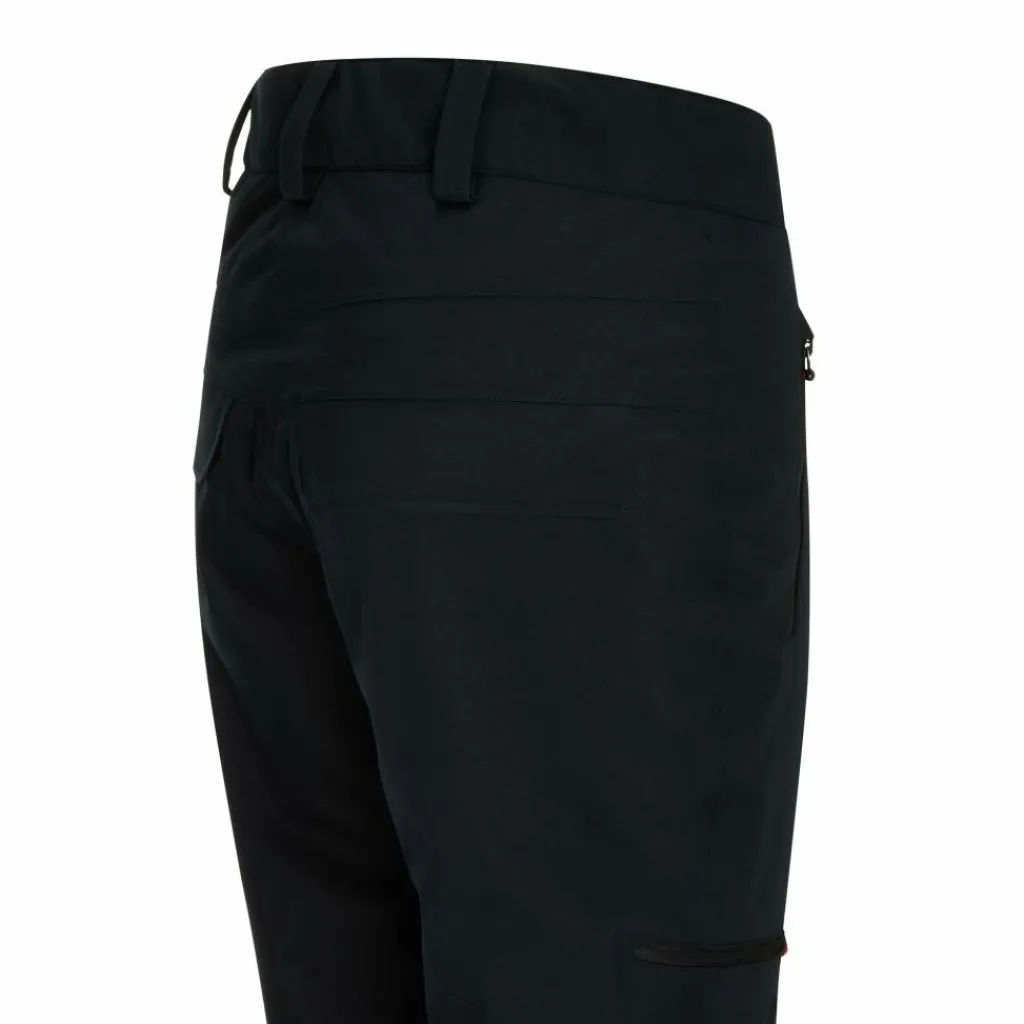 Damit auch von unten kein Schnee die Hose eindringen kann, ist die Hose mit integrierten Gamaschen ausgestattet. Diese bleiben dank der Stiefelhaken auch bei ausladenden Bewegungen an Ort und Stelle. Der Hosenbund ist hinten etwas länger geschnitten und bietet dadurch auch im empfindlichen Nierenbereich noch mehr Schutz vor Kälte. Die insgesamt fünf Einschubtaschen bieten Platz für GPS, Smartphone, Taschenofen, Wanderkarten und vieles mehr.
