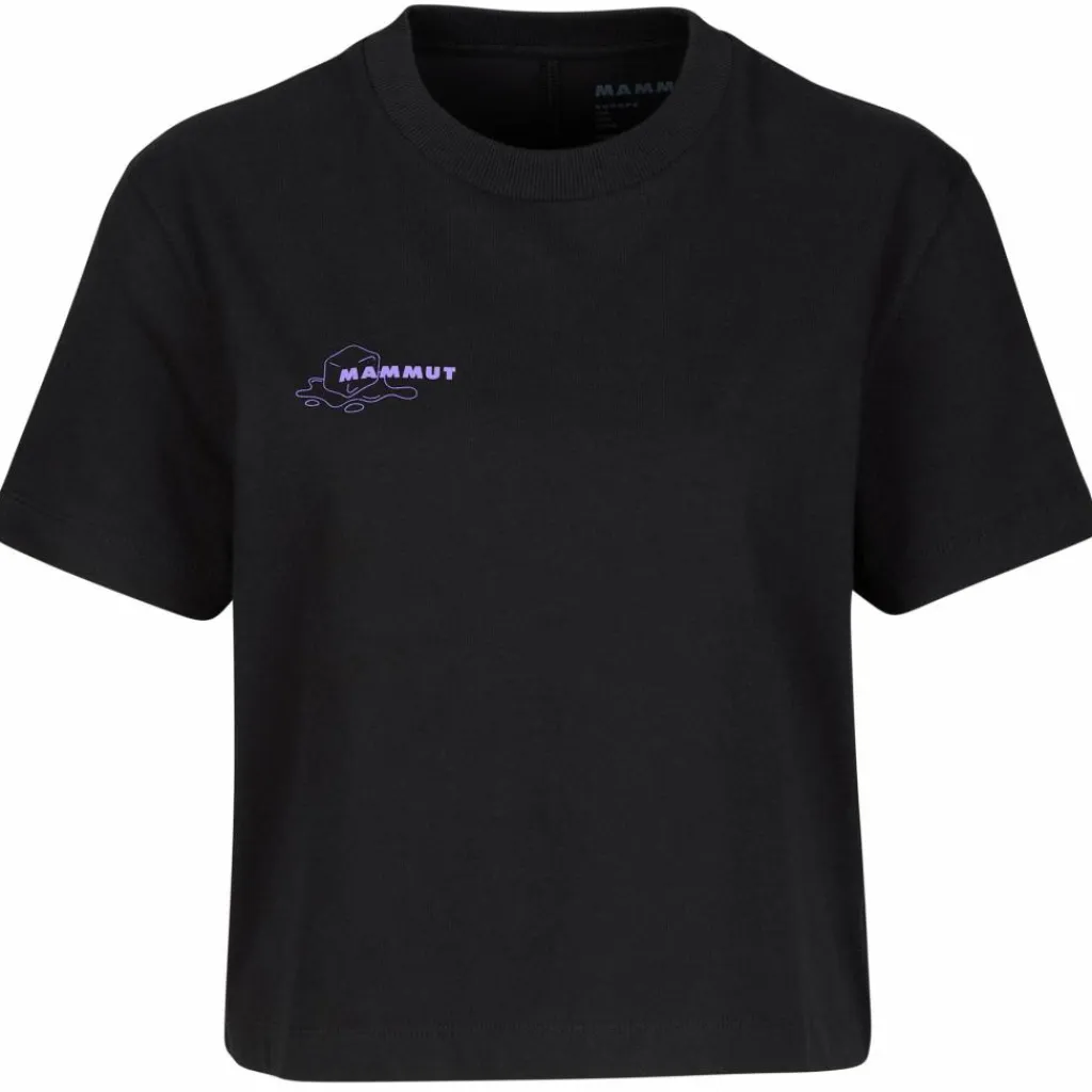 Das Mammut Base Cropped T-Shirt Women Glacier kommt im kurzen, lockeren Cropped-Schnitt daher. Am Rücken ziert ein großer Print mit ernsthafter Botschaft das Baumwoll-Shirt.