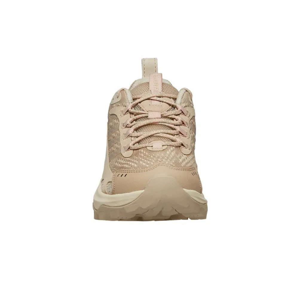 Letzteres verdankst du vor allem den schützenden TPU-Elementen, die im Zehen- und Fersenbereich, aber auch seitlich zum Einsatz kommen. Dadurch wird der Schuh aber nicht nur robuster, sondern auch die seitliche Stabilität wird erhöht, der Fuß „schlingert“ also nicht im Schuh. Der Rest besteht aus besonders leichtem, aber auch hochgradig atmungsaktivem Mesh-Gewebe. Dieses sorgt zum einen für eine optimale Luftzirkulation, aber auch für rasches Trocknen und natürlich das geringe Gewicht.