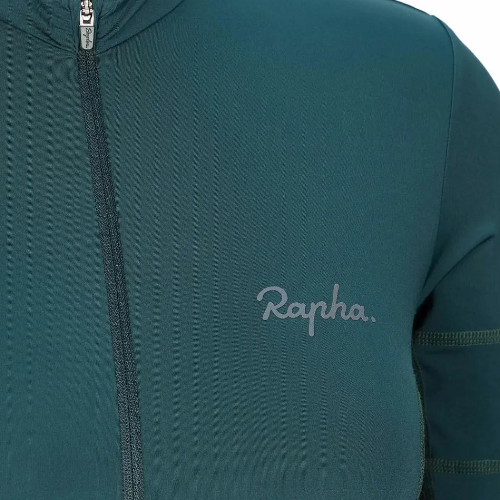 Das Women’s Rapha Jersey liefert dem Wind dank engem Schnitt und sehr hoher Elastizität keinerlei Angriffsfläche. Mit dem durchgehenden RV ist das An- und Ausziehen sowie das Lüften kein Problem. 3 Trikottaschen plus eine Reißverschlusstasche am Rücken bieten genug Stauraum. Der hintere Saum ist rutschhemmend silikonisiert und hält das Fahrradtrikot zuverlässig in Position.