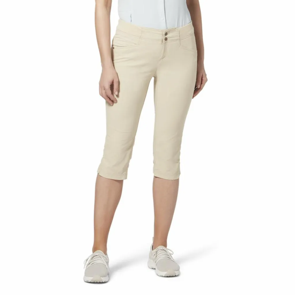 Der breite, elastische Bund sorgt für einen passgenauen und bequemen Sitz. Weiterer Vorteil: Dank wasserabweisender Imprägnierung lässt die Capri-Hose leichten Regen einfach abperlen. So bleiben deine Beine im Falle eines kleinen Regenschauers lange trocken.