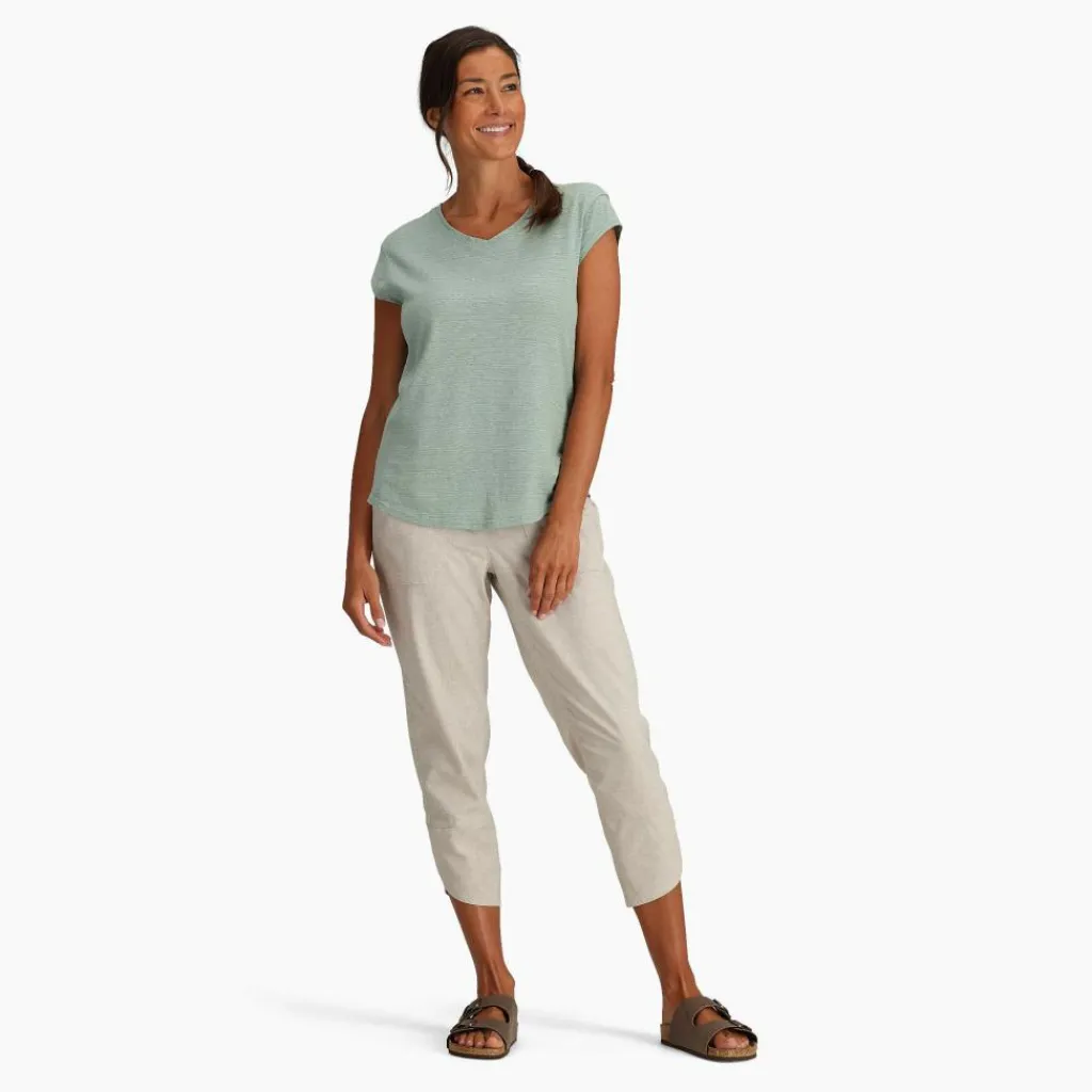 Im Vacationer V-NK S/S kommen Bio-Baumwolle, recyceltes Polyester und nicht zuletzt Hanf zum Einsatz, das ohne Pestizide wächst und wenig Wasser verbraucht. Die gute Öko-Bilanz kann sich sehen lassen. Der Hanffaser-Anteil macht das Vacationer V-NK S/S schön robust und formstabil; außerdem wirkt Hanf antimikrobiell, wodurch dieses Shirt ein Stück weit profitiert und länger frisch bleibt.