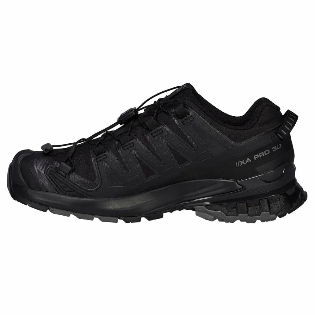 Das ist der XA Pro 3D V9 von Salomon. Aus schnell trocknendem, luftigem Mesh und stabilisierendem TPU-Verstärkungen. Innen leicht gepolstert und mit synthetischem Futter ausgestattet. Für angenehmes Auftreten und gut klimatisierte Füße. Die verdeckt eingearbeitete Zunge verhindert das Eindringen störender Kleinstteilchen. Übrigens werden deine Füße in dieser Version auch vor eindringendem Wasser geschützt. Eine zum Einsatz kommende Gore-Tex Membran bietet Schutz bei Regen und Feuchtigkeit und sorgt dank hochgradiger Atmungsaktivität auch für ein ausgeglichenes Trageklima.