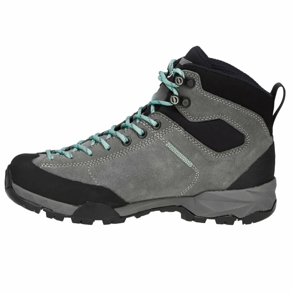 Gefertigt ist er aus robustem Veloursleder. Bei schlechtem Wetter werden die Füße durch eine in den Schuh integrierte Gore-Tex Membran zuverlässig vor Nässe geschützt. Im Schaftbereich ist der knöchelhohe Schuh sehr flexibel gehalten und bequem gepolstert. Für gute Trittsicherheit wurde die Sohle des Mojito Hike GTX leicht versteift und an den Seiten und an der Ferse etwas hochgezogen. Der leichte Sohlenaufbau bietet gute Dämpfung und gewährt mit der griffigen Vibram XS Trek Profilsohle den notwendigen Halt.