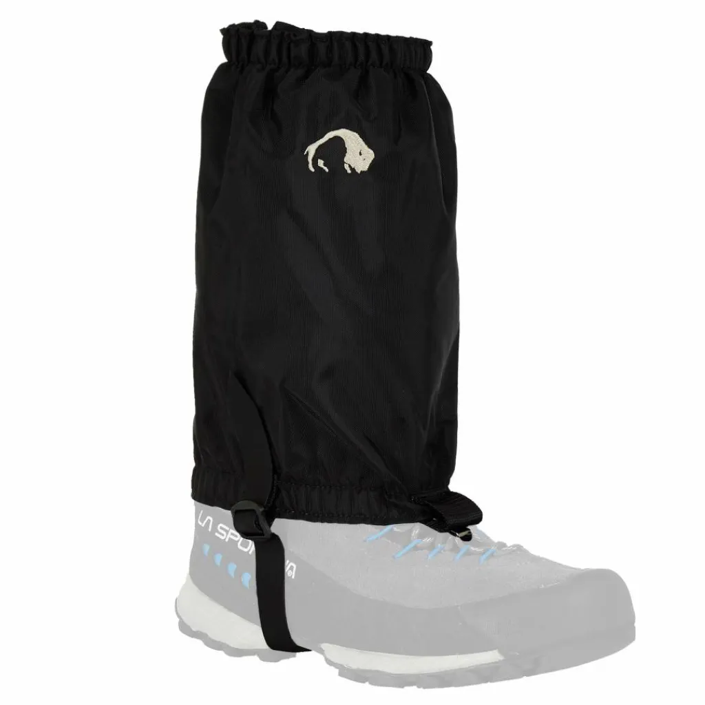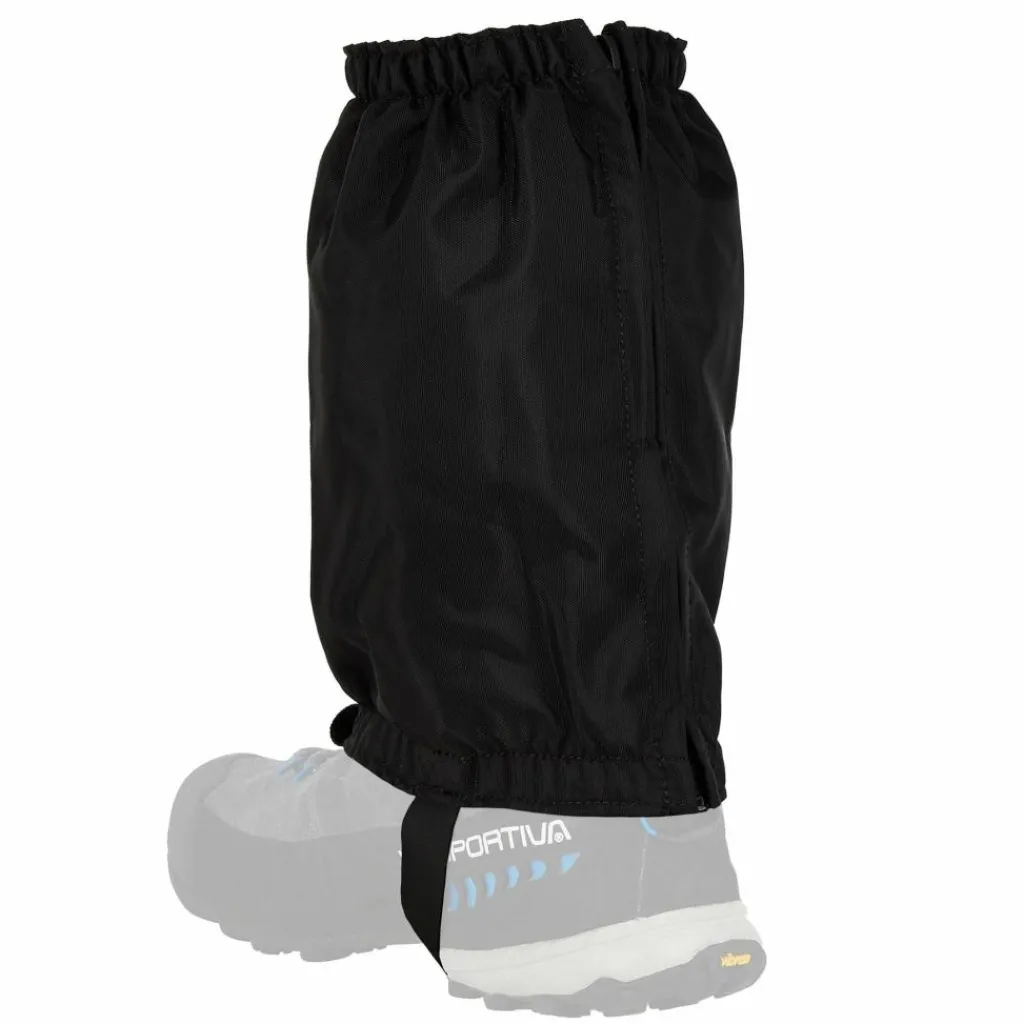 Zwei kräftige Gummizüge (im Knöchelbereich und auf mittlerer Wadenhöhe) optimieren die Passform der kurzen Gamasche. Ein kräftiger, verstellbarer Riemen hält sie unter dem Schuh. Ein strapazierfähiger Metallhaken bietet die Möglichkeit, die Gamasche am Schuh zu fixieren. Geschlossen wird sie mit einem Reißverschluss. Das robuste, wasserabweisende Material schützt vor Regen, Gestrüpp und Geröll.