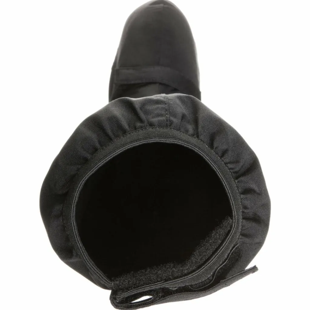 Die Überschuhe sind mit einem durchgehenden Klettverschluss an der Rückseite ausgestattet, wodurch du sie bei Bedarf einfach überziehen kannst. Die Sohle ist, von der Fußspitze abgesehen, offen. Ein Gummi unter dem Mittelfuß hält die Überschuhe in Position. Der Klettverschluss auf dem Spann dient zur Weitenanpassung. Für Schuhe mit SPD-Cleats geeignet.