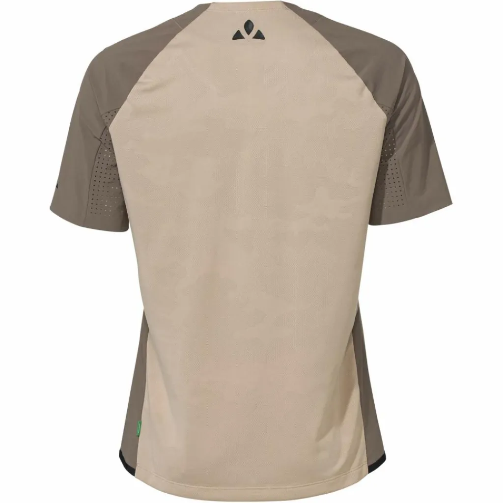 Das robuste Polyamid-Material aus alten Reifen wird in Ärmeln und Schultern eingesetzt. Der andere Teil des Materialmixes am Rumpf besteht aus recyceltem Polyester und ist somit auch sehr nachhaltig. Lasergeschnittene Belüftungslöcher sind in diesem Material unter den Armen integriert. Dank dieser Konstruktion besticht das Trikot durch hohen Tragekomfort, genügend Robustheit und luftiges Feuchtigkeits- sowie Klimamanagement. Das Bike T-Shirt kommt hinten länger geschnitten mit angenehm weichem V-Ausschnitt-Kragen.
