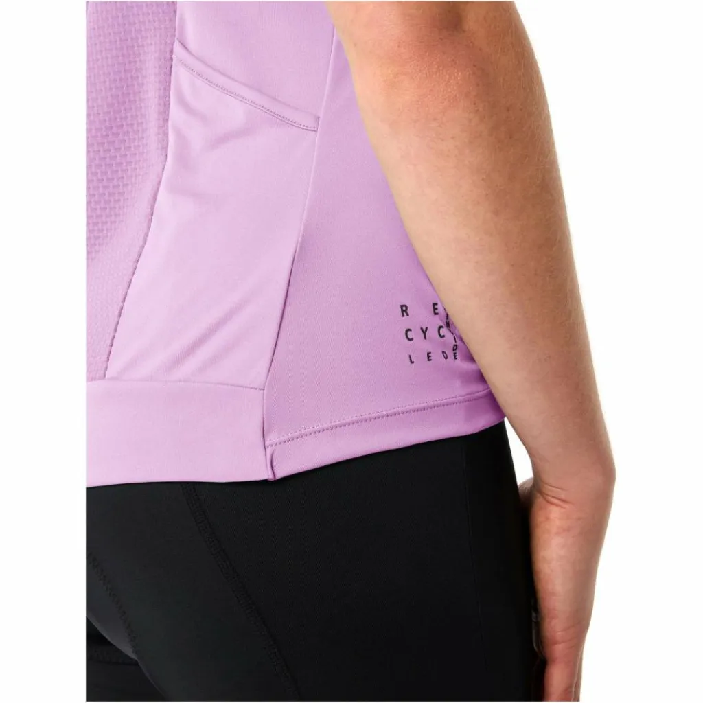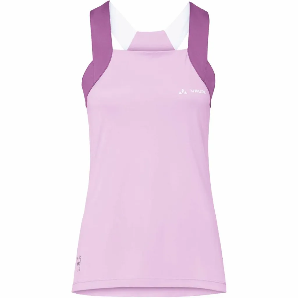 Die bequemen Träger umschließenden die Schulterblätter schön; das schnelltrocknende Gewebe aus recyceltem Polyester liegt angenehm weich auf der Haut und gibt Feuchtigkeit schnell ab. Zur optimalen Belüftung hat das sommerliche Top am Rücken ein weiches, luftiges Wabenmesh. Zwei offene, integrierte Rückentaschen und das dekorative Vaude Logo runden den Radsport-Look dieses Fahrrad-Tops ab.