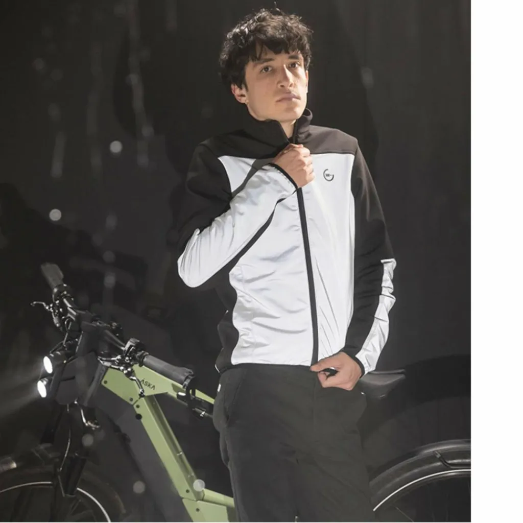 Sportliche Fahrrad-Softshelljacke mit jeder Menge Reflexion: Die Santiago Jacket schützt vor Wind, ist wasserabweisend und wärmt; vor allem aber sorgt sie für Aufmerksamkeit auf dem Rad!