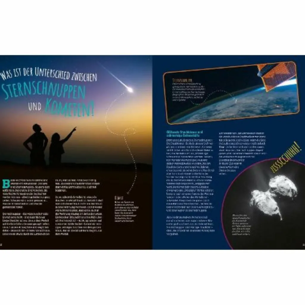 Ist das Universum wirklich mit einem Urknall entstanden? Und wenn ja: Was war davor? Wie viele Sterne hat unsere Milchstraße und können wir dort hinfliegen? Gibt es irgendwo da draußen Außerirdische? Wie wird man Astronautin oder Astronaut? Was sind Schwarze Löcher? Und warum ist Pluto eigentlich kein Planet mehr? Die Kinder gehen auf eine spannende Reise durch den Weltraum. Einige Himmelskörper kann man mit bloßem Auge erkennen, andere werden mühsam erforscht.