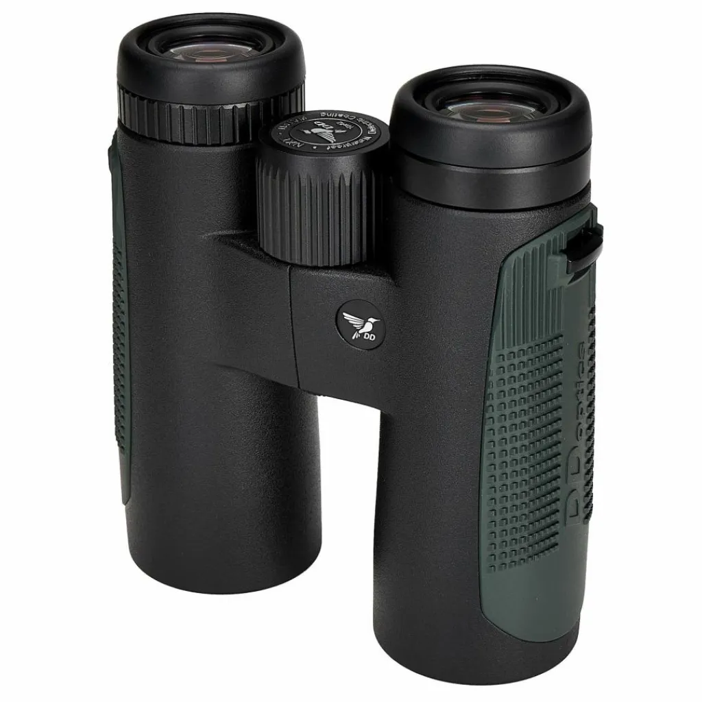 Die Kombination aus 10-facher Vergrößerung und 42 Millimeter Objektivdurchmesser schafft eine gute Balance aus Nähe und Übersicht. Mit einem Sehfeld von 115 Metern auf 1000 Meter behältst du auch bewegte Motive sicher im Blick. ED-Linsen, Flatfield-Okulare und ein Linsensystem aus neun Elementen sorgen für farbtreue Schärfe bis zum Rand. Das phasenkorrigierte, dielektrisch verspiegelte Schmidt-Pechan-Prisma sowie BaK-4-Prismen unterstützen eine gleichmäßige, kontrastreiche Abbildung.
