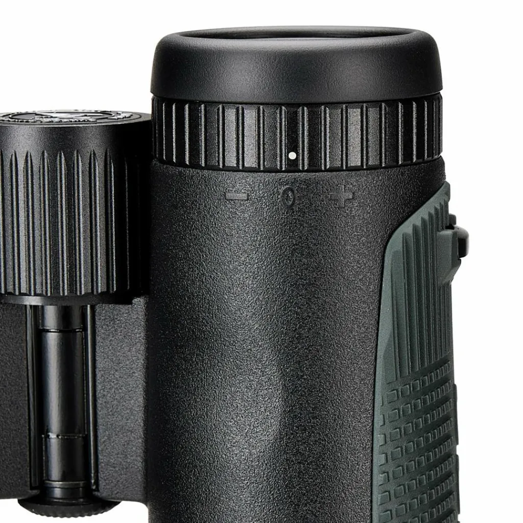 Der Augenabstand von 16,7 Millimetern eignet sich auch für Brillenträger. Mit dem Nahfokus ab 1,5 Metern kannst du Pflanzen, Insekten und feine Strukturen aus kurzer Distanz beobachten. Die griffige Gummiarmierung mit farbigen Seitenpads liegt auch bei Kälte oder Nässe sicher in der Hand.