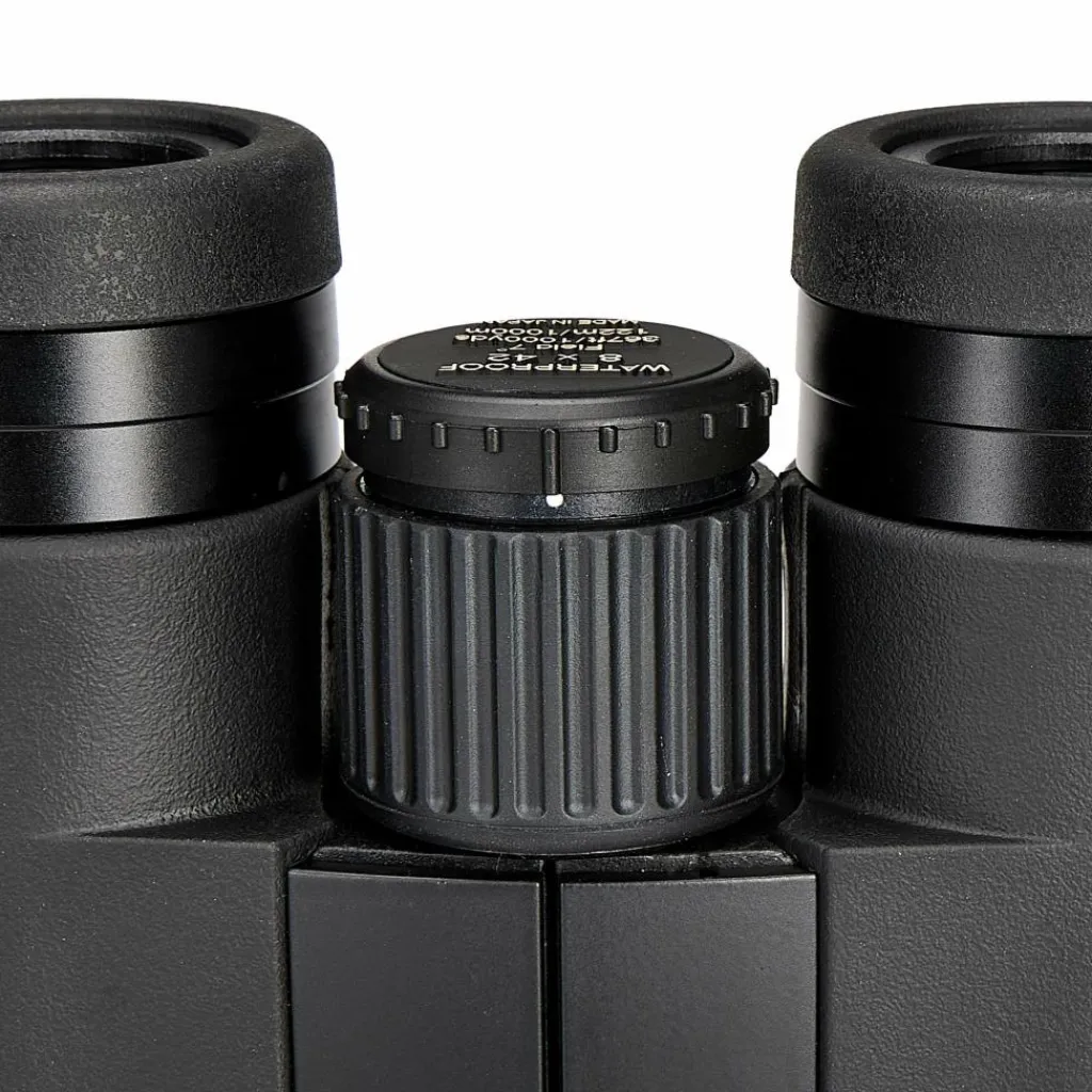 Mit einem Dioptrieausgleich von +/- 3 kannst du das Fernglas auf deine Sehschärfe einstellen. Anders als bei anderen Ferngläsern lässt sich der Diopter am Fokussierrad durch Herausziehen einstellen und verriegeln. So verstellt sich der Diopter nicht versehentlich beim Transport oder bei der Handhabung des Fernglases.