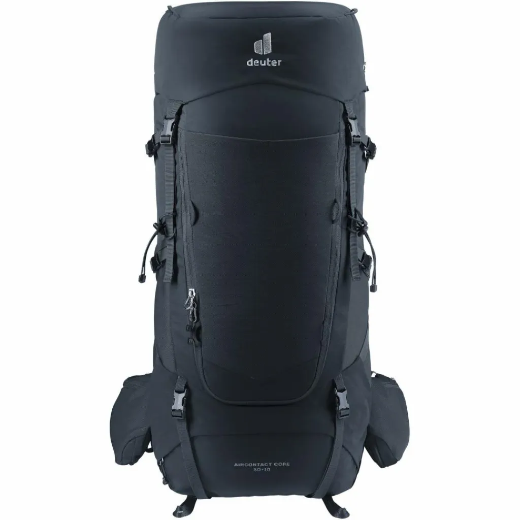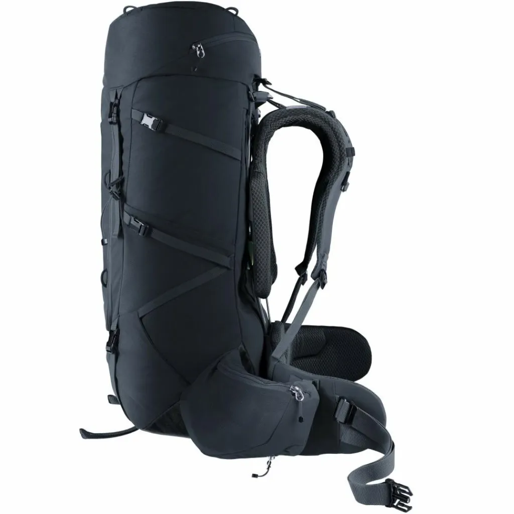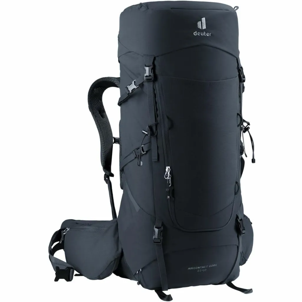 Der Trekkingrucksack wartet mit allen Fächern auf, die du auf Mehrtagestouren brauchst, um deine Ausrüstung übersichtlich und griffbereit zu sortieren. Das Hauptfach lässt sich klassisch von oben und über einen großen Frontzugang öffnen, sodass du jederzeit problemlos an deine komplette Ausrüstung kommst. Dank der Schlaufen auf der Front kannst du Zelt oder Isomatte einfach außen am Rucksack befestigen und so einiges an Platz im Hauptfach sparen. Den Aircontact Core musst du zum Trinken übrigens nicht absetzen: Mithilfe der Flaschenhalterung auf dem rechten Hüftgurt kannst du deinen Durst auch mit geschultertem Rucksack unkompliziert löschen.