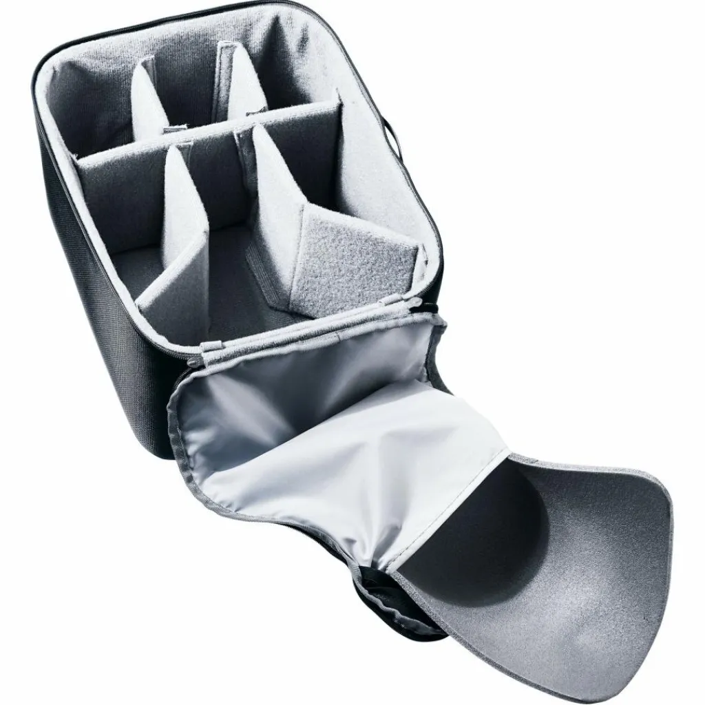Integrierbare, rundum gepolsterte Fotoausrüstungsbox, die auch ohne Rucksack eigenständig verwendet werden kann. Sie ist speziell auf den Futura Pro Jaypack 36 mit Frontöffnung abgestimmt, modular und individuell mit unterschiedlich großen, gepolsterten Klett-Trennwänden bestückbar und schützt so das Equipment zuverlässig vor Schmutz und Stößen. Das gepolsterte Reißverschlussfach ermöglicht einen schnellen Frontzugriff auf das Hauptfach in dem Platz für eine DSLR mit aufgesetztem Objektiv und bis zu vier weiteren Objektiven oder Zubehör ist.