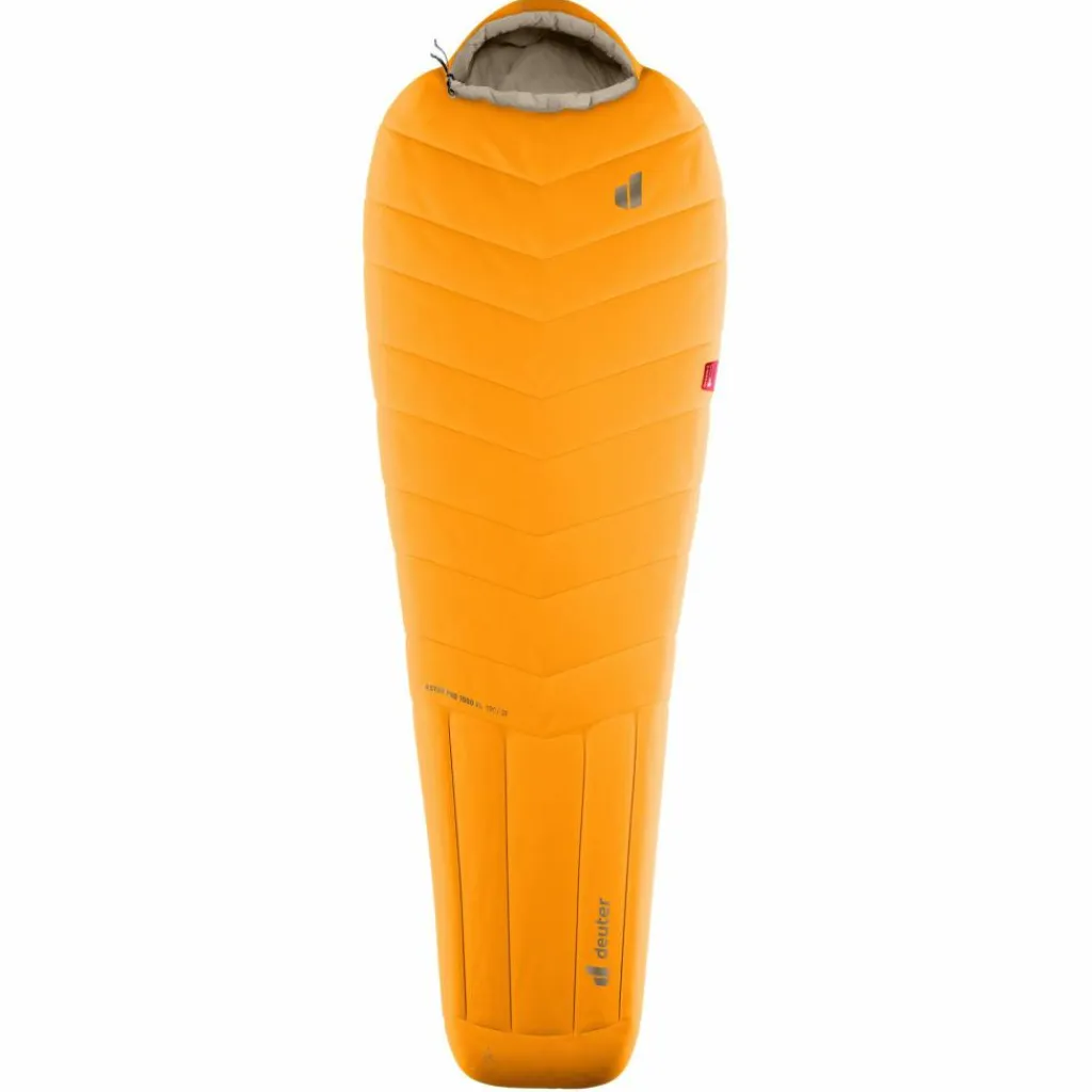 Der extralange Deuter Astro Pro 1000 EL eignet sich für alle Bergsteiger und ambitionierte Trekker, die bei ihren Touren auf maximale Wärmeisolation bei geringem Gewicht setzen. Der Daunenschlafsack in Mumienform ist mit einer dehnbaren Innenhülle ausgestattet, die sich optimal an den Körper schmiegt und den zu erwärmenden Innenraum um 25 % verkleinert. Zudem bleibt die Daunenfüllung dank des speziellen Designs stets gleichmäßig verteilt, wodurch eine konstante Wärme gewährleistet ist. Dank der 360°-Isolation bleibt der Schlafsack auch bei Bewegungen rundum isoliert. Alle Modelle der Astro Pro-Serie sind ein bluesign-Produkt und bestehen zudem aus zertifizierter Daune (RDS).