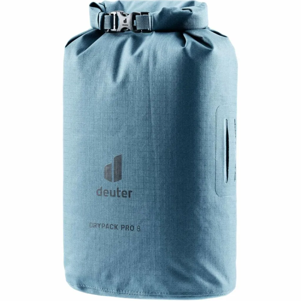 Der Dry Pack Pro 8 aus wasserdichtem Material mit getapten, wasserdicht versiegelten Nähten schützt den Tascheninhalt bei zweckmäßigem Einsatz sicher vor dem Eindringen von Nässe. Dazu muss das Roll-Top mindestens dreimal gerollt und die Schnalle verschlossen sein. Der robuste D-Ring und die seitlichen Ausrüstungsschlaufen ermöglichen die sichere Befestigung oder Aufhängung des Dry Packs an Gegenständen.