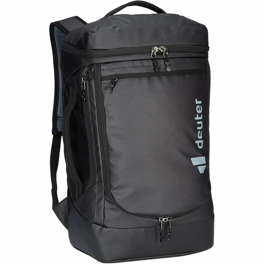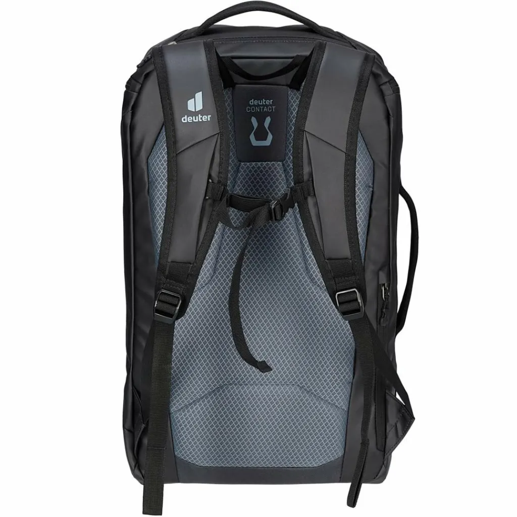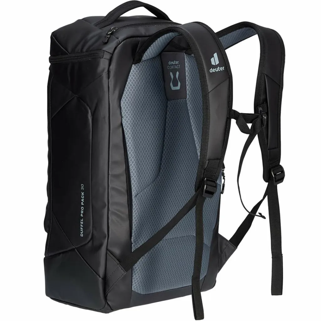 Der Duffel Pro Pack 30 ist mit Deuters Contact-Rücken inklusive ergonomischer, gepolsterter Schultergurte sowie Brustgurt ausgestattet, wodurch er sich sehr bequem trägt – auch vollbepackt und über längere Strecken. Oder du benutzt die Aufstecklasche für Trolleygriffe und ziehst ihn mitsamt Koffer hinter dir her.