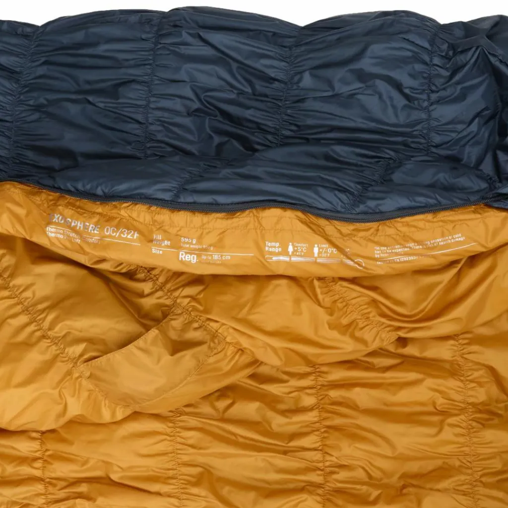 Der Exosphere ist ein Schlafsack mit elastischen Nähten, der viel Bewegungsfreiheit bietet. Durch seine 360-Grad-Füllung ist er die richtige Wahl für alle Seitenschläfer.