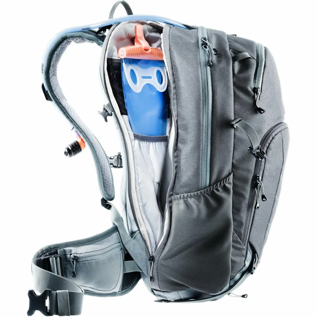 Mit dem neuen TÜV/GS zertifizierten Protektor-Rucksack Attack EL sind ambitionierte Biker*innen auf anspruchsvollen Trails bestens geschützt. Der auf die Anatomie großer Menschen abgestimmte, herausnehmbare Rückenprotektor mit mehrmaligen Aufprallschutz (je nach Stärke des Einschlages) schützt zuverlässig vor Verletzungen. Zudem bleibt der Bike-Rucksack dank des hohen Hüftflossen-Ansatzes auch auf ruppigen Abfahrten fest am Rücken. Tragepassagen erleichtert der Carrying Guard und bei schweißtreibenden Auffahrten sind Helm und Protektoren ganz einfach außen am Rucksack zu befestigen