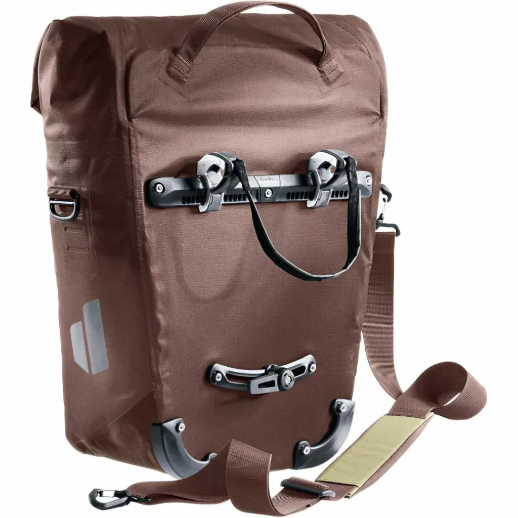 Die multifunktionale Fahrradtasche findet ihren Einsatz als Einkaufs- oder Aufbewahrungstasche am Hinterrad oder, dank einzippbarer Organisationseinheit für Arbeitsunterlagen, als Umhängetasche fürs Büro. Das wasserdichte Material bietet zuverlässigen Schutz vor dem Eindringen der Nässe. Die neue BagFix-Halterung sorgt für maximale Bewegungsfreiheit, da die Last zu 100% auf dem Hinterrad und nicht auf dem Rücken des Bikers liegt und ermöglicht das Abnehmen der Tasche vom Gepäckträger in einem Handgriff. Zudem sorgt die Taschenklappe mit Magnetverschlüssen für zusätzliche 10 Liter Stauraum.