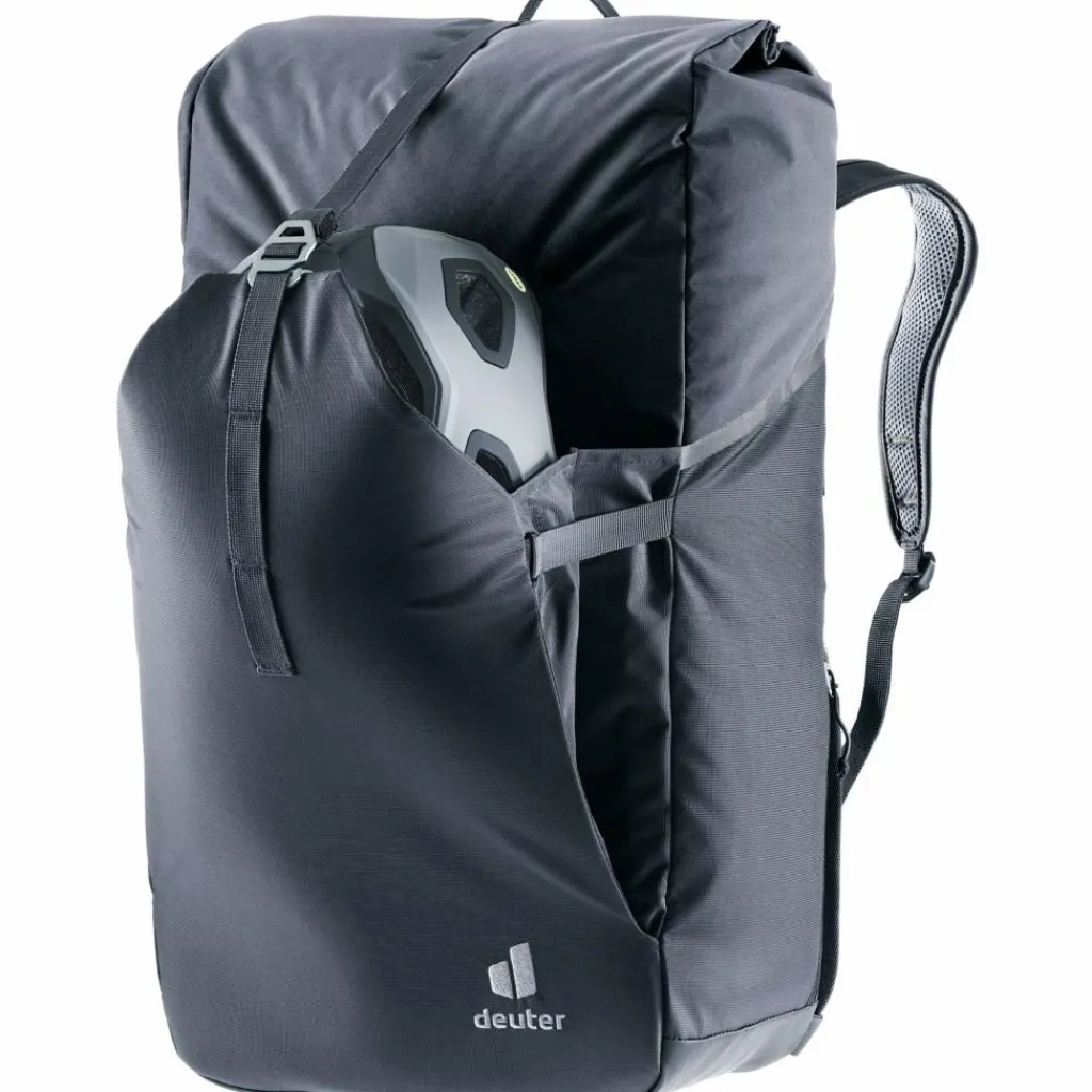 Der handliche Roll-Top-Zugang mit Schnalle ermöglicht einen schnellen und unkomplizierten Zugriff auf das Gepäck im Hauptfach. Zusätzlich liefern die herausnehmbare Organisationseinheit und die universelle Befestigungsmöglichkeit der Deckelkonstruktion sowie die funktionale Fronttasche praktische Verstau- und Organisationsmöglichkeiten – auch für den Helm.