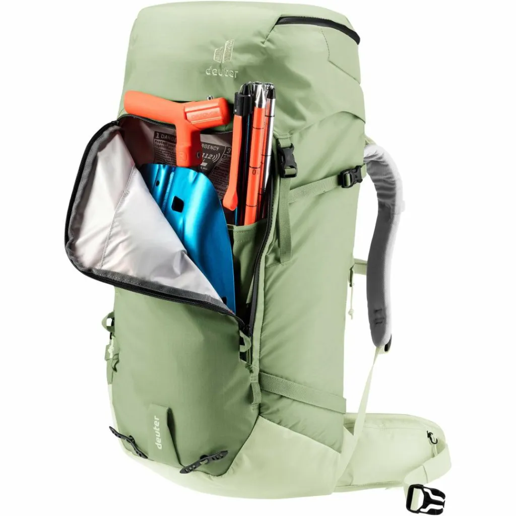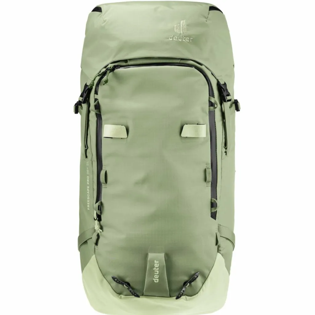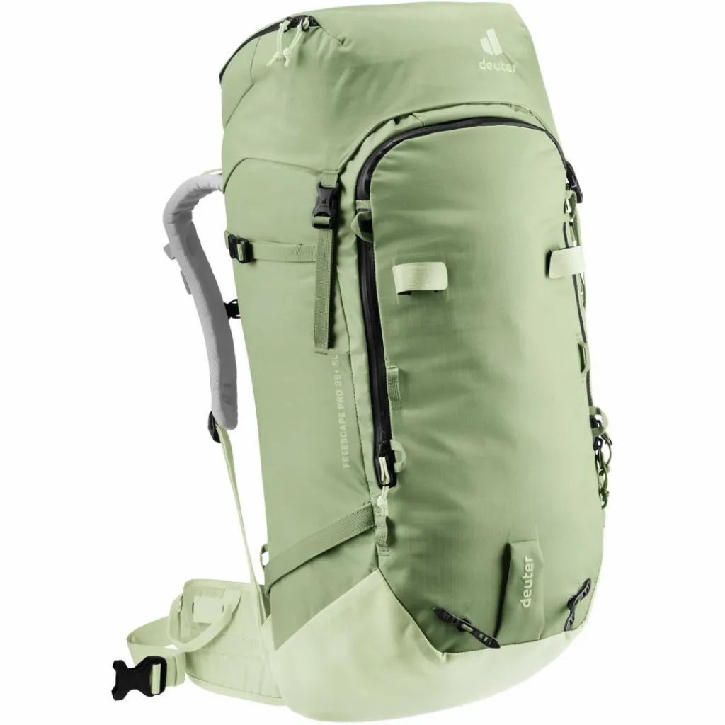 Als Allrounder für ambitionierte Skibergsteigerinnen ist der Freescape Pro für anspruchsvolle Mehrtagestouren konzipiert. Der gut belüftete, sichere und auf die weibliche Anatomie angepasste Sitz bietet hohen Tragekomfort, die aufklappbare Rückenöffnung einen schnellen Zugriff auf die Ausrüstung. Dabei können Skier, Snowboard oder Steigeisen dank der variablen Befestigungsriemen außen fixiert bleiben. Das separate Sicherheitsfach für Sonde und Schaufel ist im Notfall sofort erreichbar. Der PFC-freie Rucksack ist zu 100% aus recyceltem Material, das Hauptmaterial ist bluesign zertifiziert.