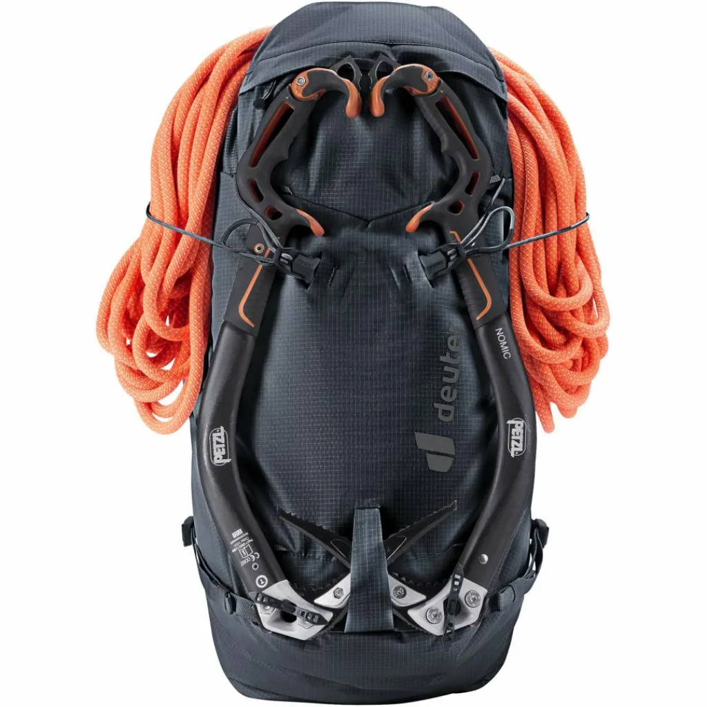 Der schmale Hüftgurt, das abnehmbare Helmnetz, die praktischen Befestigungsschlaufen, die beidseitige Pickelhalterung und Seilfixierung sorgen nicht nur für ein herausragendes Verhältnis von Tragekomfort zu Gewicht, sondern ermöglichen auch das Tragen eines Klettergurtes und bieten damit funktionale Flexibilität im Einsatz des Rucksacks.