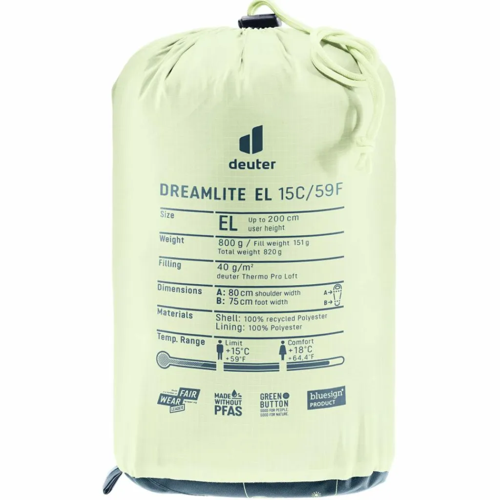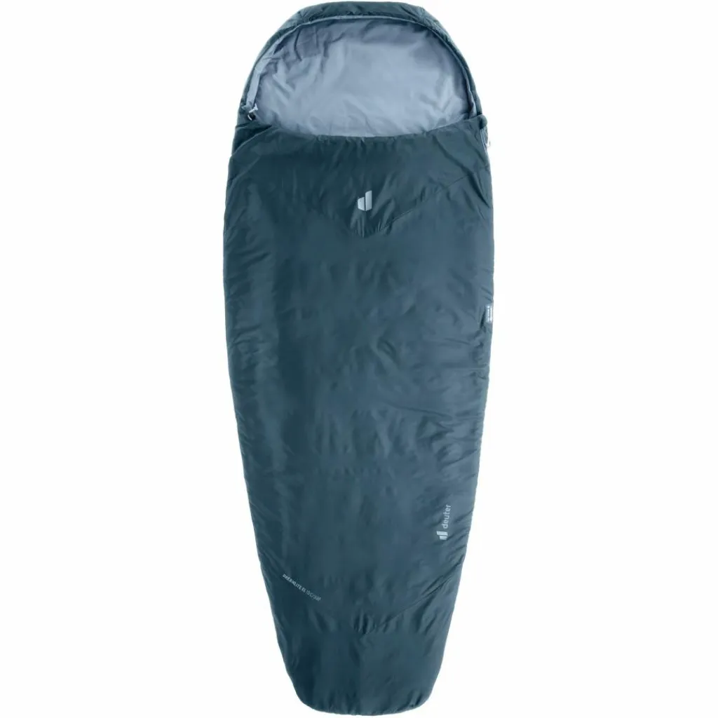 Der Deuter Dreamlite Schlafsack kommt hier in der extra geräumigen Variante daher. Der ei-förmige Schnitt sorgt für viel Bewegungsfreiheit und bietet damit auch im vollständig geschlossenen Zustand Platz für große Menschen, die im Schlaf bewegungsfreudig sind. Die großzügige Kapuze bietet Platz für ein Kissen oder lässt sich mittel Kordelzug an den Kopf anpassen, sodass keine Wärme verloren geht. Das Innenfutter ist weich und liegt angenehm auf der Haut. Zusammen mit der 360°-Wärmeleistung wird der Schlafsack damit zur gemütlichen Begleitung auf der Hütte oder im Camper.