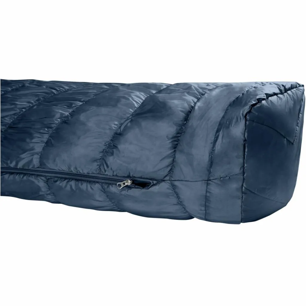 Praktische Details wie die ergonomisch geformte Fußbox, der Wärmekragen, eine Wertsacheninnentasche und der Klemmschutz am Reißverschluss erhöhen den Schlafkomfort spürbar. Bei Bedarf kannst du den Schlafsack komplett öffnen und als Decke nutzen. Für den Transport steht dir ein vergrößerter Packsack zur Verfügung, der das Verstauen erleichtert.