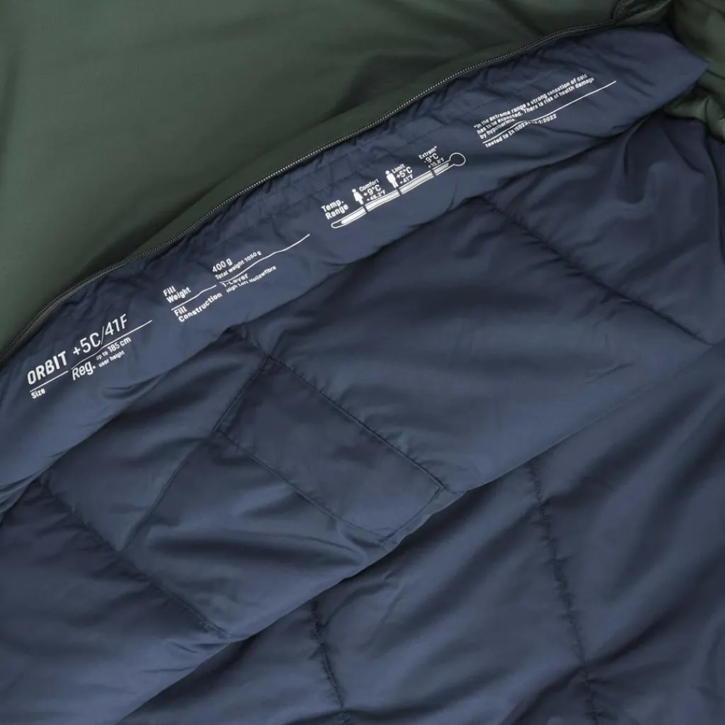 Der Orbit +5° eignet sich für Hüttentouren, Übernachtungen bei Freunden oder Campingtrips im Sommer. Mit einem Komfortbereich bis +9 °C hält er dich angenehm warm, auch wenn die Nächte etwas frischer werden. Die unempfindliche Kunstfaserfüllung isoliert selbst bei feuchter Witterung zuverlässig. Durch die nahezu nahtlose Verarbeitung des Außenmaterials in Kombination mit einer PFC-freien Imprägnierung, werden Schmutz und Feuchtigkeit zuverlässig abgewiesen.