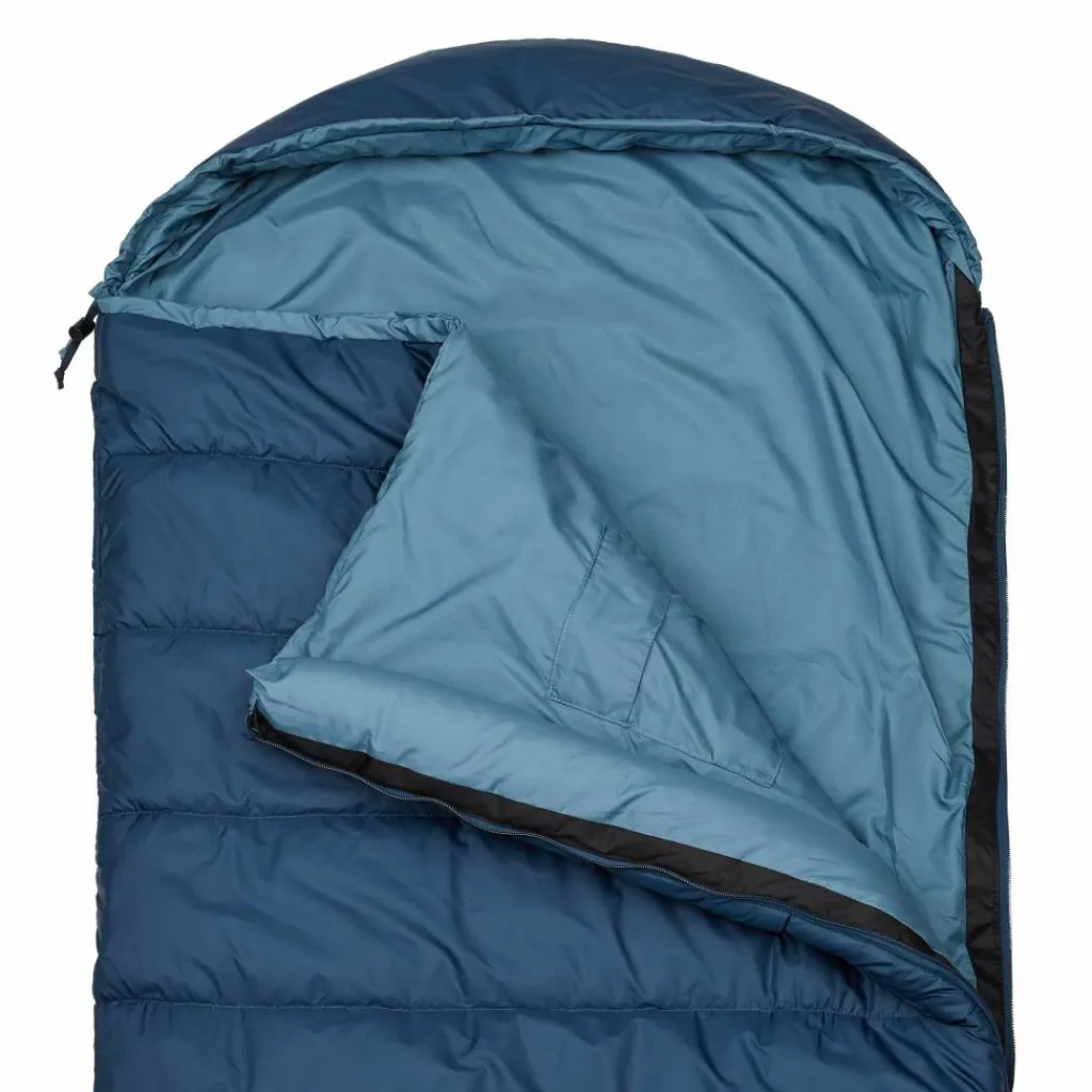 Dieser Deckenschlafsack ist genau der richtige, wenn es im Sommer auf Campingurlaub geht. Er kann als Schlafsack oder (komplett geöffnet) als Decke verwendet werden. Außerdem ist er erweiterbar.
