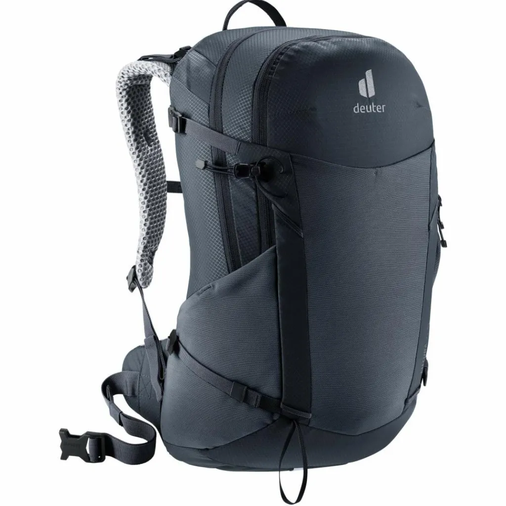 Wie auch sein Vorgänger punktet der neue Futura mit einem elastischen Federstahlrahmen, der das Gewicht des Rucksacks auf deine Hüften überträgt und so für größtmöglichen Tragekomfort sorgt. Das Rückenpolster geht nahtlos in den Hüftgurt über, vermeidet dadurch Druckpunkte und schmiegt sich weich an deine Hüften an. Und dank der ergonomischen Form der ActiveFit Schultergurte macht der Rucksack auch auf bewegungsintensiven Touren – zum Beispiel beim Einsatz von Trekkingstöcken – jede deiner Bewegungen problemlos mit.