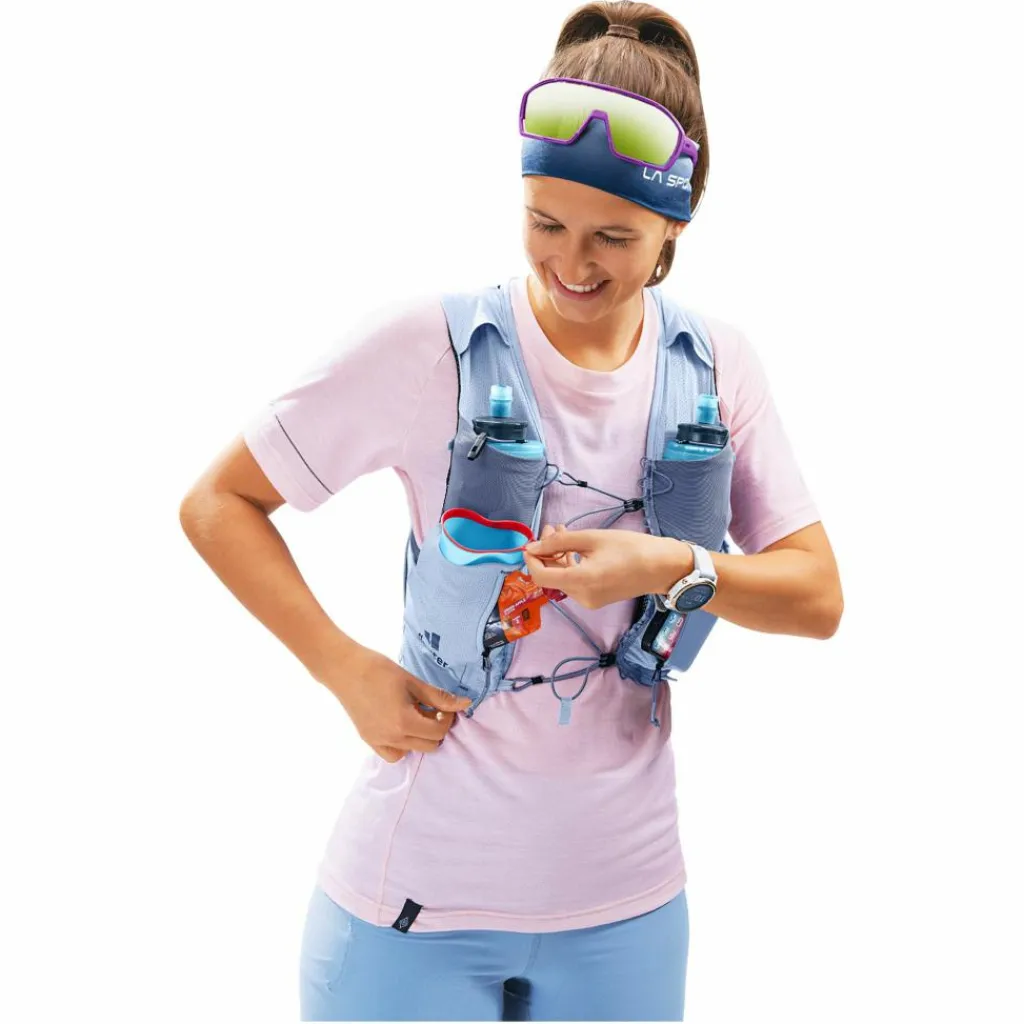 Die enge Passform und das atmungsaktive Stretch-Material der bluesign Product Laufweste schmiegen sich reibungslos an. Die elastische Brustgurt-Konstruktion lässt sich individuell verstellen und ermöglicht nicht nur einen ungestörten Bewegungsablauf, sondern auch freies Atmen bei jeder Intensität. Modulare elastische Befestigungskordeln zur Kompression oder Befestigung z.B. von Stöcken, vier Taschen an jedem Schulterträger und Steckfächer am Rücken verwandeln die Weste in ein ausgeklügeltes, gut sortiertes Raumwunder für Trail Runnerinnen.