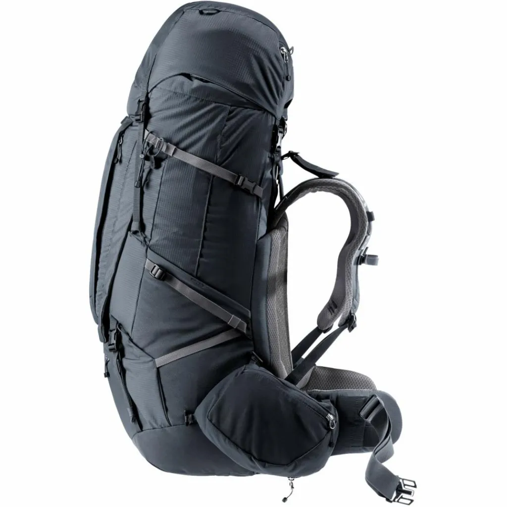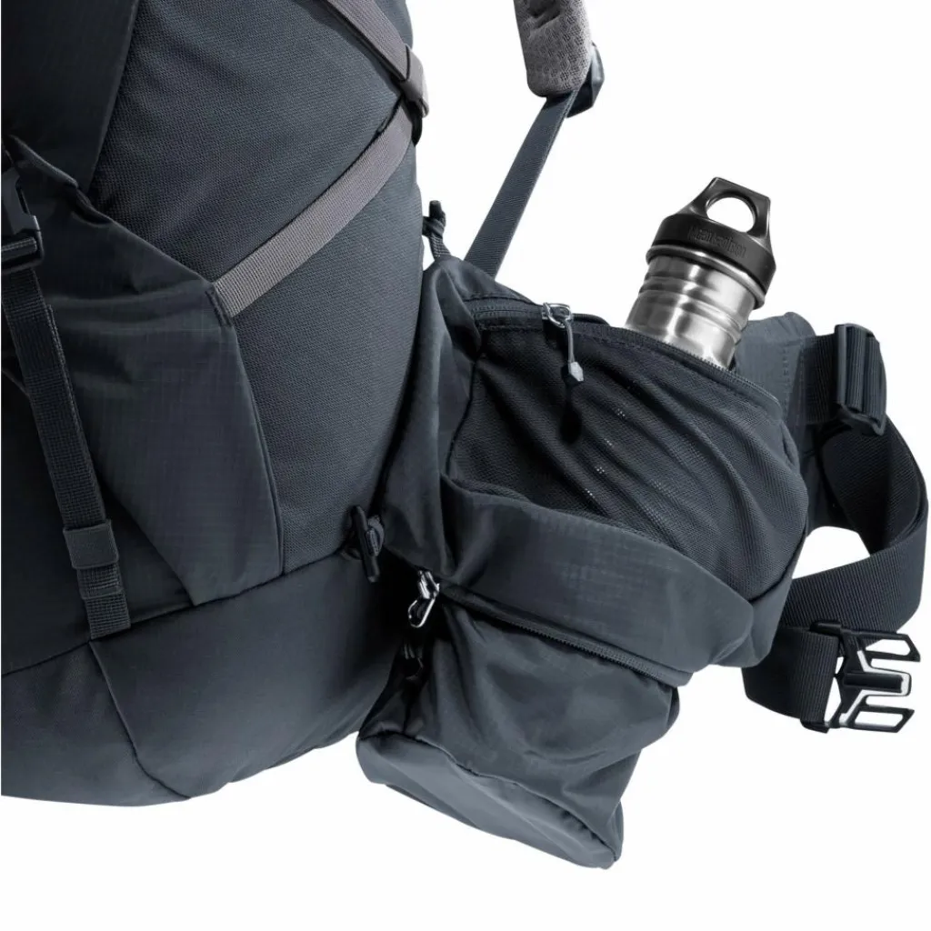 Viele verschiedene Innenfächer bieten eine praktische Organisation der Ausrüstung. Und auch außen bieten Taschen mehr Volumen und Ordnung für alles, was schnell griffbereit sein soll. Unter anderem sogar für Zeltgestänge. Auch die geräumigen, abnehmbaren Hüftflossentaschen ermöglichen mehr Stauraum – hier findet sogar eine 1,5 L Trinkflasche in einer zusätzlich ausklappbaren Tasche Platz. Der schnelle Zugriff über die Frontöffnung und das geräumige Bodenfach erleichtert das Handling. Der abnehmbare Deckel kann mit den zusätzlichen Schulterträgern im Handumdrehen zum Daypack umfunktioniert werden.
