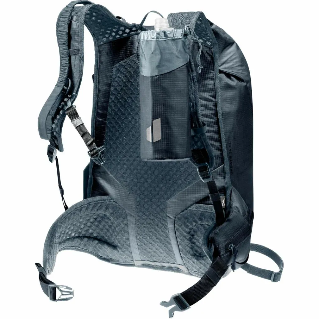 680 gr. Leichtgewicht mit SL- Lite-Komfort für Speed Skitouren: gut belüftetet, ergonomische Hüftflossen und Schulterträger mit abnehmbarem Brustgurt und ein weiches, herausnehmbares Rückenmaterial sorgen für festen, körpernahen Sitz bergauf und bergab. Die verstellbare, abnehmbare diagonale Ski-Schnellfixierung mit unterer Schlaufe für Skienden, elastischem Fixierungsband oben und schneller Fixierung über den Haken am Schulterträger ermöglicht schnelles Handling. Ein leicht zugängliches Bodenfach organisiert Felle, Harsch- oder Steigeisen und ist ohne das Absetzen des Rucksacks erreichbar.