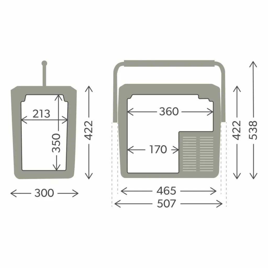 Leichte Kompressorkühlbox mit 19 L Volumen, die den Betrieb zu Hause an der Steckdose oder unterwegs im Fahrzeug erlaubt. Einstellbar von +20 °C bis -18 °C.