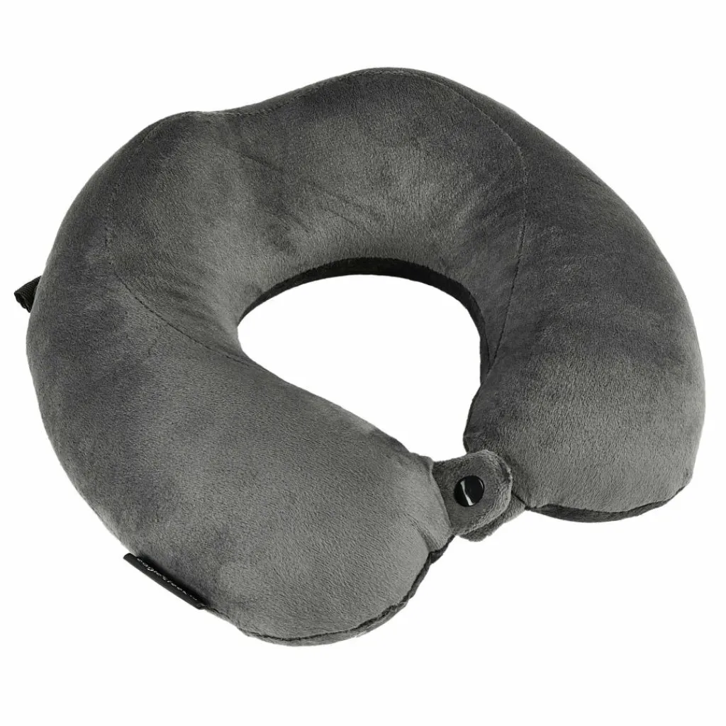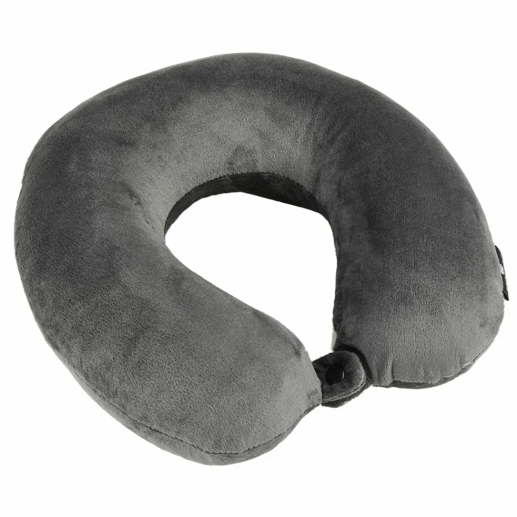 Das ergonomische Design des Nackenkissens stützt den Kopf zur Seite und nach hinten ab. Am Hals kann das Kissen durch einen Druckknopfverschluss verbunden werden, damit es sich nicht verdreht. Lange Bahn-, Auto- und Flugreisen können so bequemer überbrückt werden, sodass du am Ziel ausgeruhter ankommst. Während des Transports kannst du das Kissen an der Gurtbandschlaufe befestigen. Nach der Reise kann der Kissenbezug aus Microfleece abgenommen und gewaschen werden.