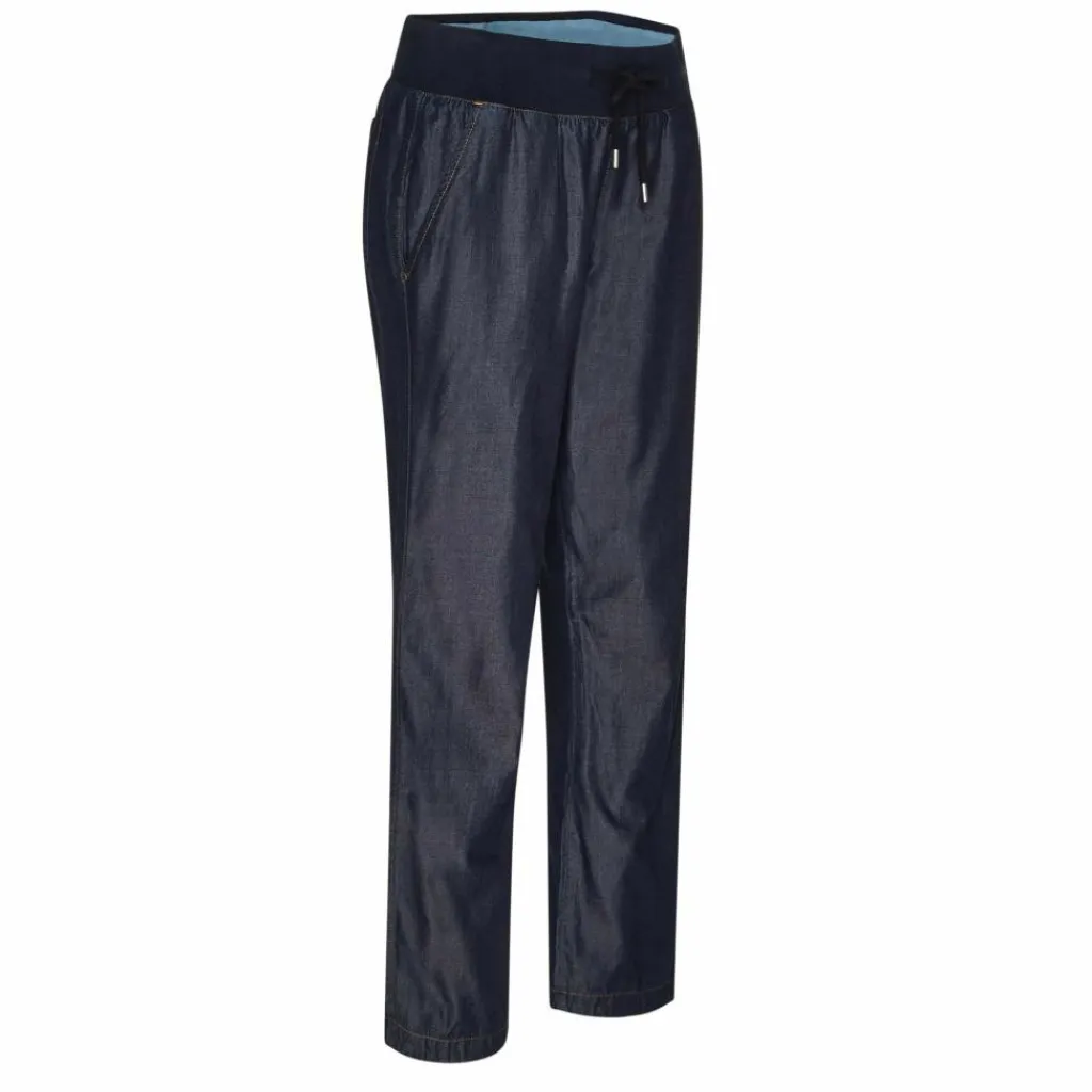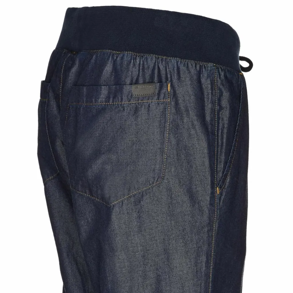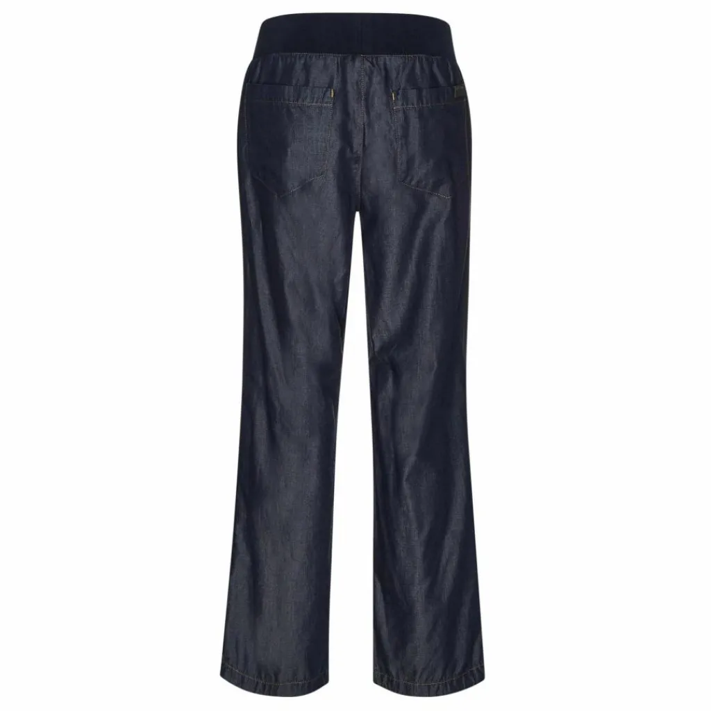 Der breite Bund besteht aus einem elastischen und angenehm weichen Rippstrick-Gewebe und ist mit einem integrierten Schnürzug ausgestattet. So lässt sich die Hose passgenau auf die gewünschte Weite einstellen. In den Beinabschlüssen befindet sich ebenfalls ein Schnürzug, so kannst du auch die Weite der Hosenbeine nach Lust und Laune variieren. Eine bequeme Sommerhose, die sich dank ihrer hübschen Jeansoptik überall sehen lassen kann, ob im Büro, an der Strandbar oder beim Städtebummel.