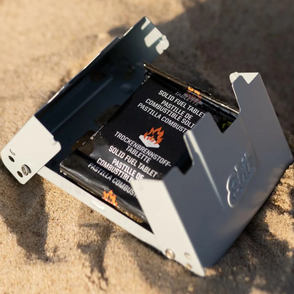 Not-/Kleinstkocher für die heiße Tasse Tee, Espressomaschinen etc. im absoluten Miniformat. Betrieben wird der Kocher mit dem bekannten Esbit Trockenbrennstoff. Extrem einfach, extrem zuverlässig!