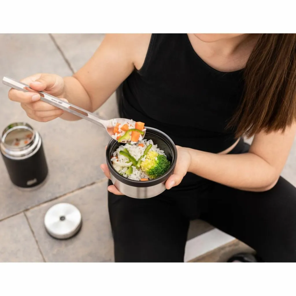 Perfekt geeignet um in großen Gefäßen zu rühren oder aus Beuteln zu essen. Die Essfläche ist poliert. Natürlich eignet sich der Löffel durch seine Länge auch ideal um beim Tischnachbarn zu Räubern 🙂