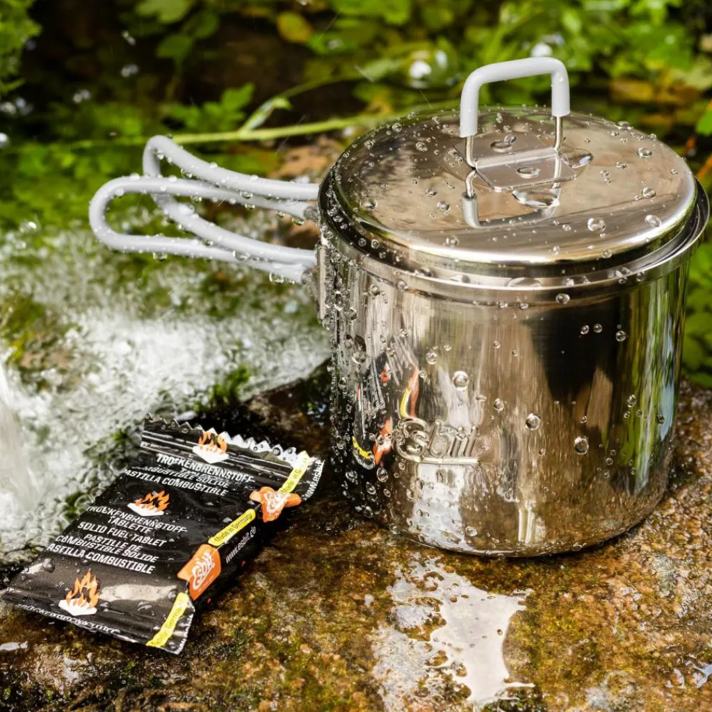 Mit den Trockenbrennstoff-Tabletten hat man die gute Gewissheit im Gepäck, Speisen und Getränke auf Temperatur bringen zu können. Sie sind vielseitig einsetzbar, zum Kochen und Erwärmen von Speisen und Getränken, aber auch als Grill- und Feueranzünder.