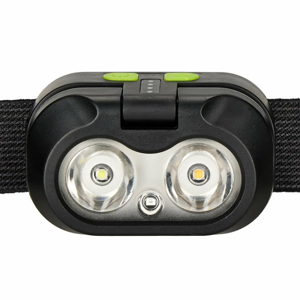 Die Head+Beam450 ist eine preiswerte Stirnlampe mit eingebautem Li-Ion Akku, drei Leuchtfarben (weiß, warmweiß, rot) und Memory-Funktion.