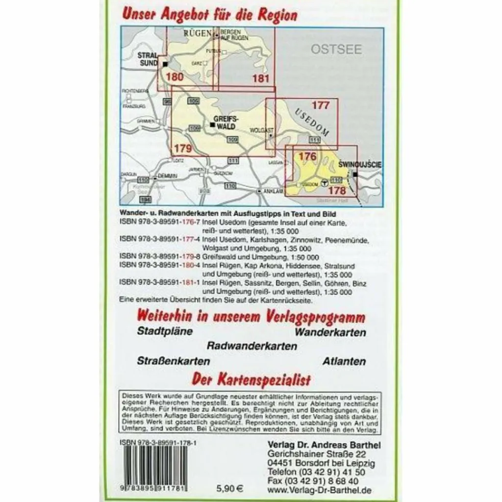 Fahrradkarten|Wanderkarten Und Winterkarten*INSEL USEDOM, AHLBECK, HERINGSDORF, BANS – Wanderkarte