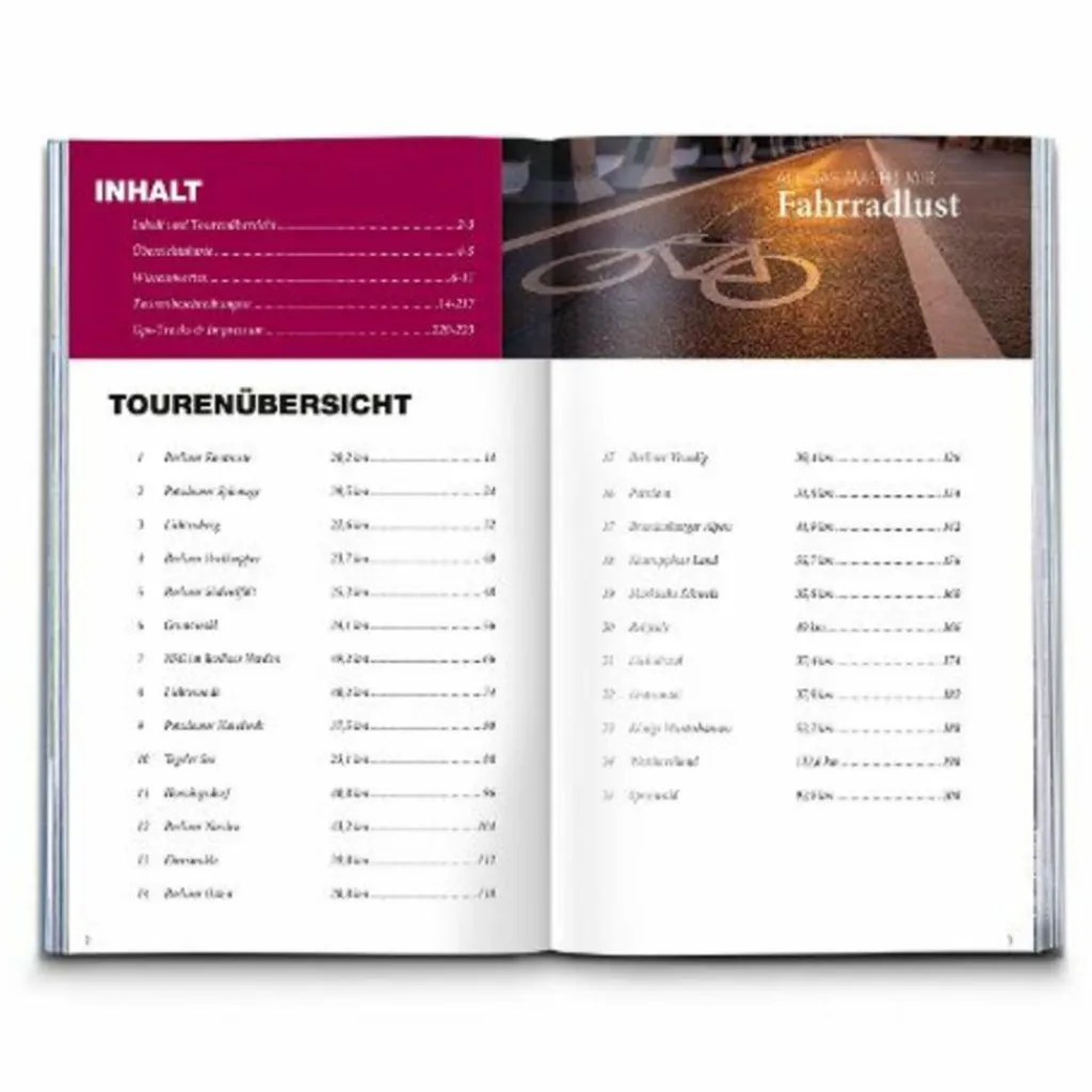 Erkunde malerische Dörfer , beeindruckende Stadtpanoramen und die natürliche Schönheit Brandenburgs. Die klaren Tourenbeschreibungen werden durch interessante Hintergrundinformationen zu Sehenswürdigkeiten und regionalen Besonderheiten ergänzt. All das macht mir Fahrradlust. In der Fahrradlust enthalten sind: Übersichtskarten Tipps zur Tourenplanung Packliste genaue Tourenbeschreibungen Tourenkarten Tourenfakten GPS-Daten