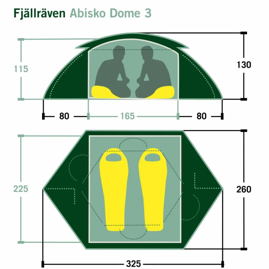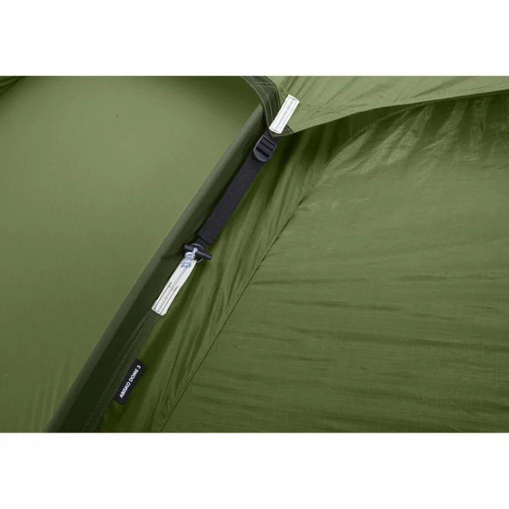 Das Abisko Dome 3 hat eine Innenzelthöhe von 115 cm, in der selbst große Abenteurer genügend Kopffreiheit haben und bequem sitzen können. Die Innenzeltbreite von 165 cm ist für zwei Personen sehr komfortabel geschnitten und bietet wenn nötig auch einer dritten Person Platz. Gute Aufbewahrungsmöglichkeiten für die Stirnlampe, Brille und andere Kleinigkeiten findest du in den Mesh-Taschen und dem abnehmbare Gearloft unter der Innenzeltdecke.